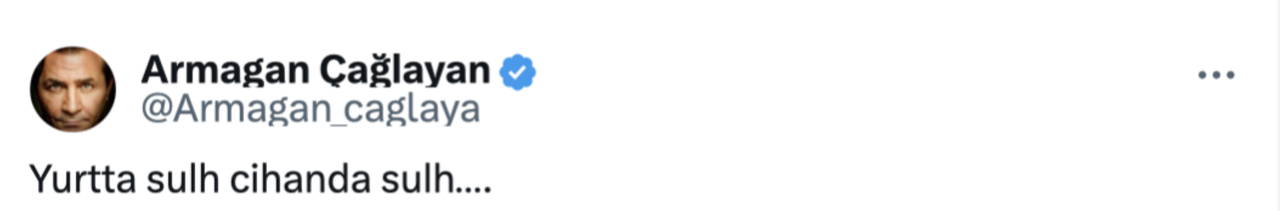 Ünlü televizyoncu Armağan Çağlayan, "Yurtta sulh cihanda sulh..." ifadelerini kullandı.