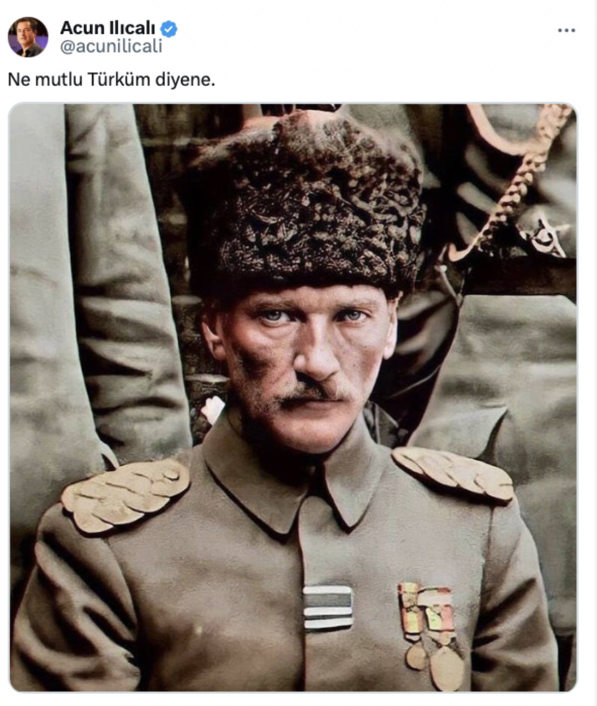 Ünlü televizyoncu Acun Ilıcalı ise, "Ne mutlu Türküm diyene" ifadelerini kullandı.