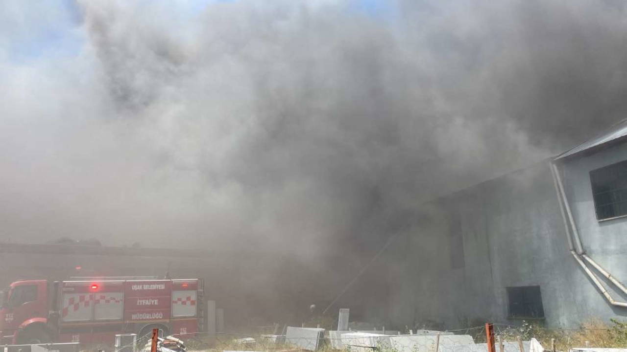 Uşak'ın Durak Mahallesi 8. Sanayi Sokak'ta bulunan tekstil fabrikasında bilinmeyen bir nedenle yangın çıktı.