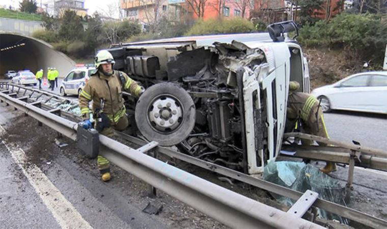 Üsküdar Şile yolunda sürücüsünün kontrolünden çıkan kamyonet, refüjü parçalayarak yolun karşısına geçip devrildi. Kazada sürücü hafif şekilde yaralanırken, iki yönde de trafik yoğunluğu yaşandı.