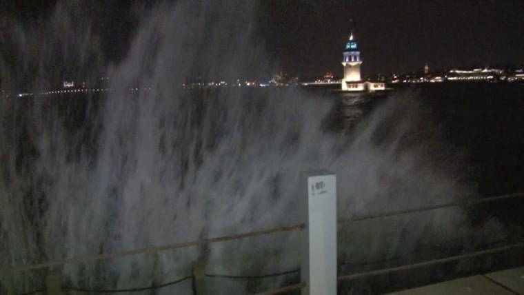 İstanbul'da lodos gece saatlerinde etkisini arttırmasıyla dev dalgalar oluştu.