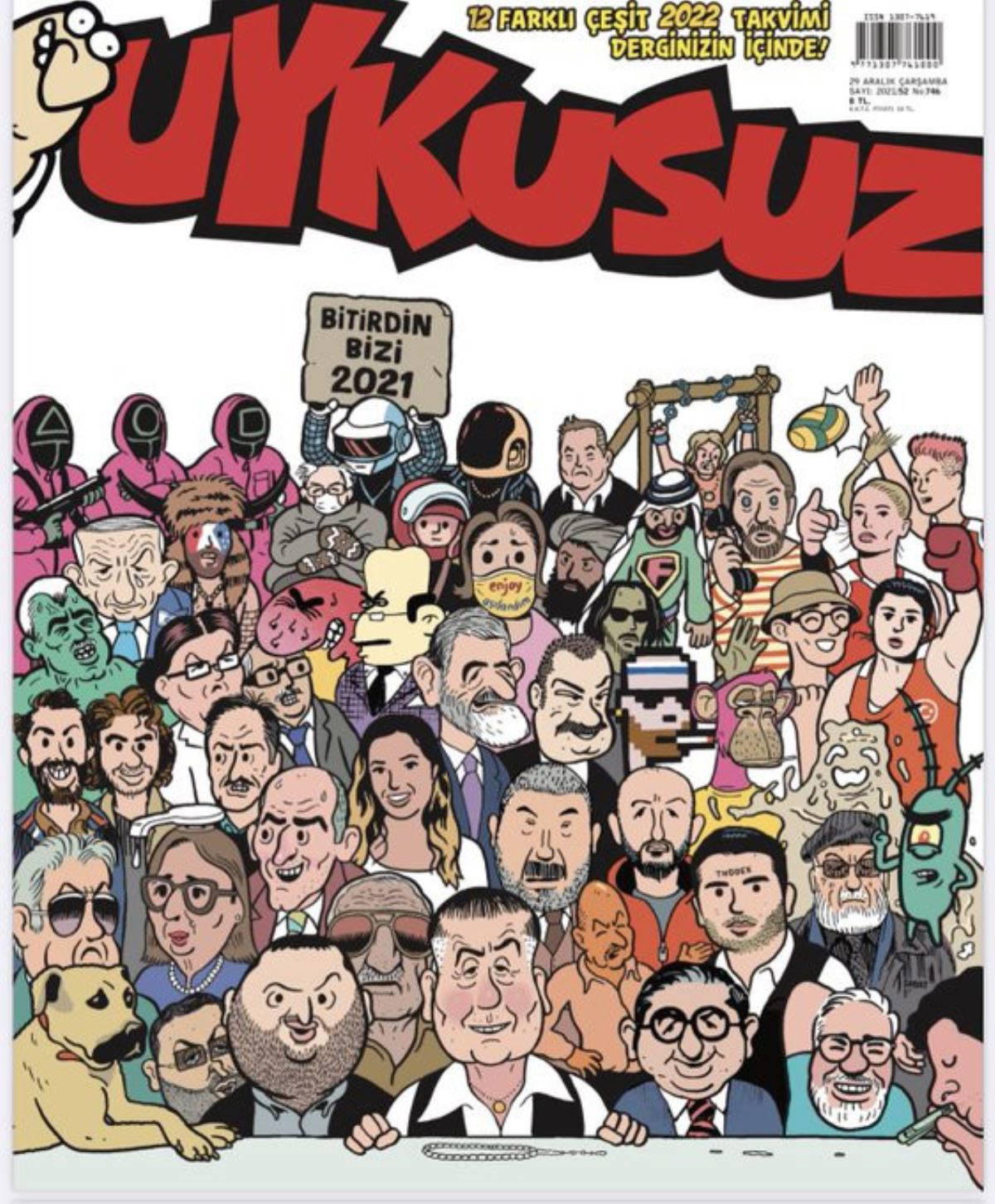 Haftalık mizah ve karikatür dergisi Uykusuz, 2021 yılına veda ederken sene boyunca Türkiye'de konuşulan olayları resmetti. Dergi, ‘bitirdin bizi 2021’ notunu düştü.