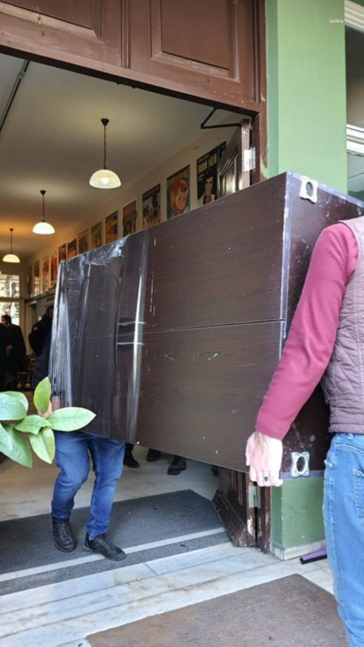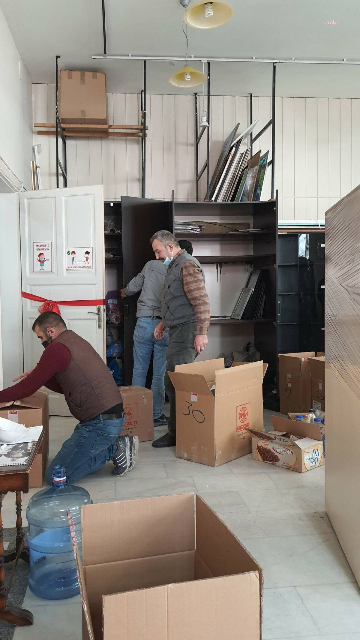 Daha sonra binanın tahliyesine başlandı. Polisler, BASAD'ın eşyalarını yediemine teslim etmek üzere kamyonlara yüklemeye devam ediyor.