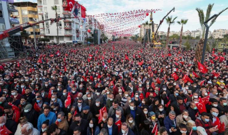 CHP 'acil seçim' çağrısıyla duyurduğu mitingin ilkini Mersin'de gerçekleştirdi. CHP Genel Başkanı Kemal Kılıçdaroğlu, alandaki yurttaşların 'Tayyip istifa' sloganlarına, "Onun istifa etmesine gerek yok onu edeple göndereceğiz" ifadeleriyle yanıt verdi.
