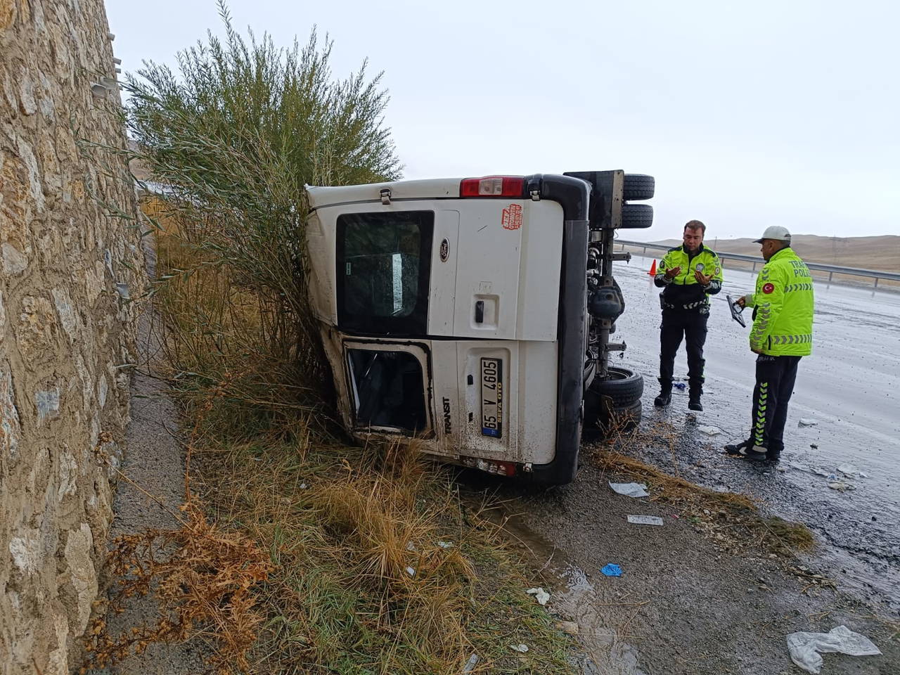 Van-Hakkari karayolunun 85'inci kilometresindeki Hoşap mevkisinde saat 12.30 sıralarında Hakkari yönünden Van'a giden Sıddık Çoban yönetimindeki yolcu minibüsü, yağış nedeniyle kayganlaşan yolda kontrolden çıkıp takla attı.