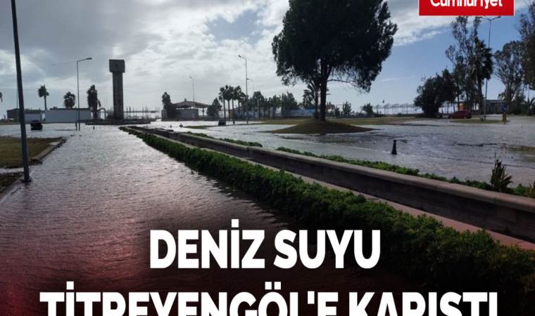Titreyengöl turizm beldesinde deniz suyu göle karışırken, saat kulesi, oturma grupları ve otoparktaki bir araç su içinde kaldı.