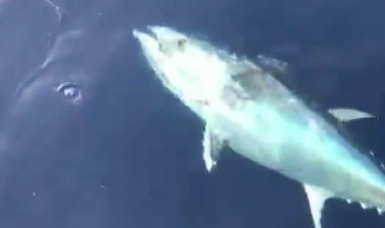 O anlar cep telefonu kamerasına yansırken, balıkçılar "Babayı buraya aldık, baba burada. 2 saat 50 dakika, alet bu" diyerek paylaşımda bulundu.