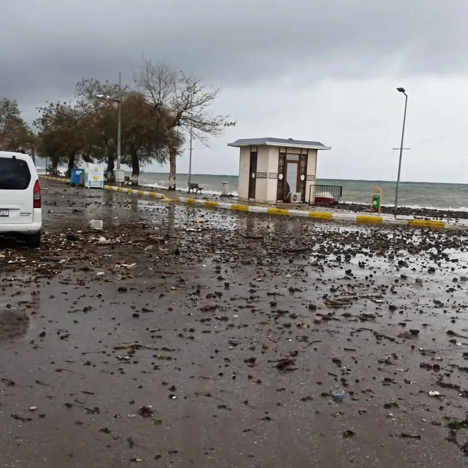Fırtına nedeniyle sahil bandından taşan deniz, kara ile birleşti. Çınarcık Belediyesi itfaiye ekipleri bölgede çalışma başlatırken, vatandaşlara da araçlarını bulunduğu yerden kaldırmaları için anons yapıldı.