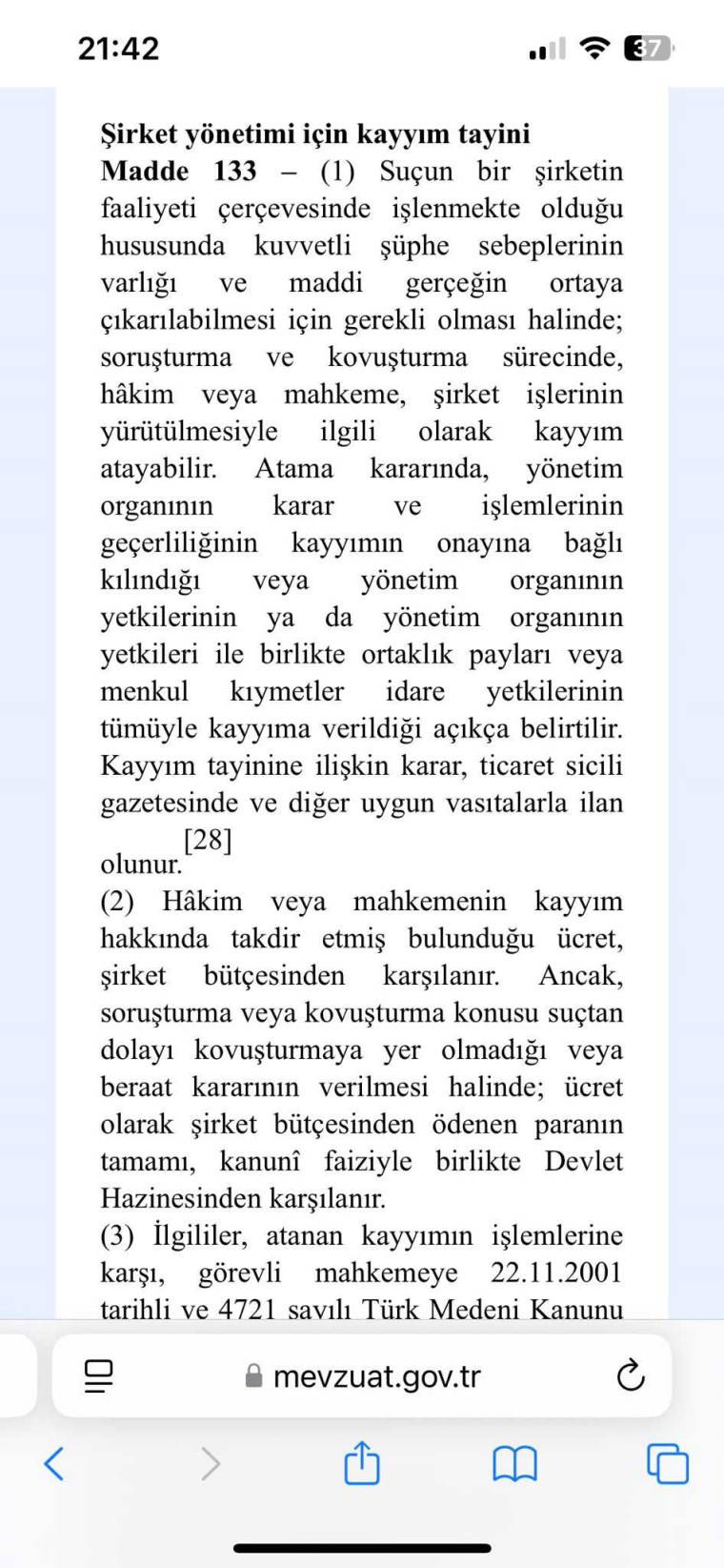 İste, "Aynı gerekçeyle kovuşturma aşamasında da kayyım atanamaz. Zaten şirketlere dair söz konusu koruma tedbirinin uygulanabileceği suçlar arasında Siyasi Partiler Kanununa muhalefet suçları da sayılmamıştır. Asliye Hukuk Mahkemeleri de açılan davalarda (hukuk mahkemesindeki süreç ile ceza soruşturması birbirinden farklıdır) ihtiyadi tedbir talepleri reddedildi. Velev ki karar çıksın, o da istinafa tabidir. Tabi “burası Türkiye, her şey mümkün” algısı hukuka olan inançsızlıktan geliyor" şeklinde yazdı.
