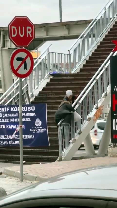 Üst geçidi kullananlar, beraberlerindekilerden destek alarak atlarken, bazıları korkuluktan kaldırıma zıplamayı tercih etti.