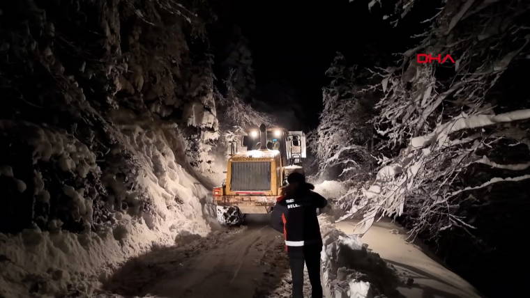 Kar kalınlığının 1 metreyi geçtiği ve cep telefonunun çekmediği yaylada zor durumda kalan baba-oğul, telefon sinyali alabilecekleri bir tepeye ulaşarak durumu muhtar Selahattin Büyükkara’ya iletti. İhbar üzerine Trabzon Büyükşehir Belediyesi Yol Yapım, Bakım ve Onarım Dairesi Başkanlığı ekipleri harekete geçti.