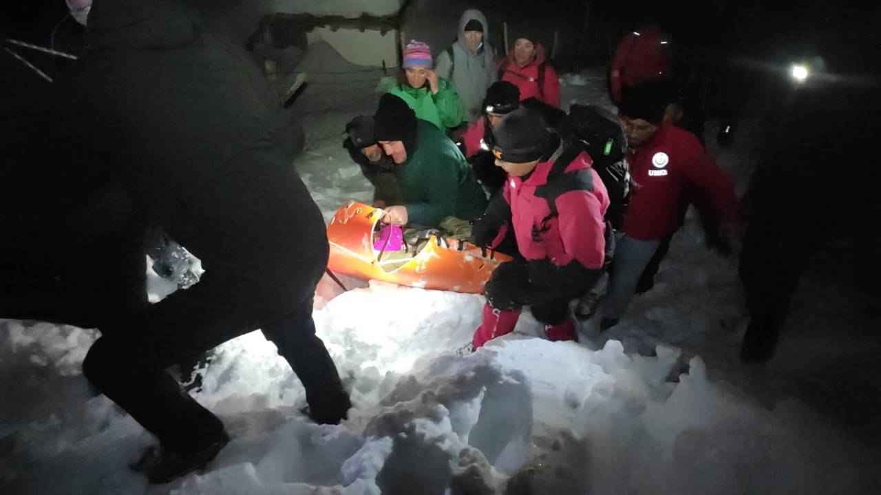 JAK Timi ve UMKE ekipleri, gruptakilerin bulundukları yerden tahliye edilmesi için 1 buçuk metre kalınlığındaki kar üzerinde yaklaşık 2 kilometre yürüyerek donmak üzere olan şahısları kurtardı.