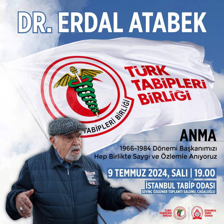 31 Mayıs 2024 tarihinde kaybettiğimiz Türk Tabipleri Birliği (TTB) 1966-1984 dönemi Merkez Konsey Başkanı Dr. Erdal Atabek’i 9 Temmuz Salı günü, saat 19.00’da İstanbul Tabip Odası’nda anacağız.