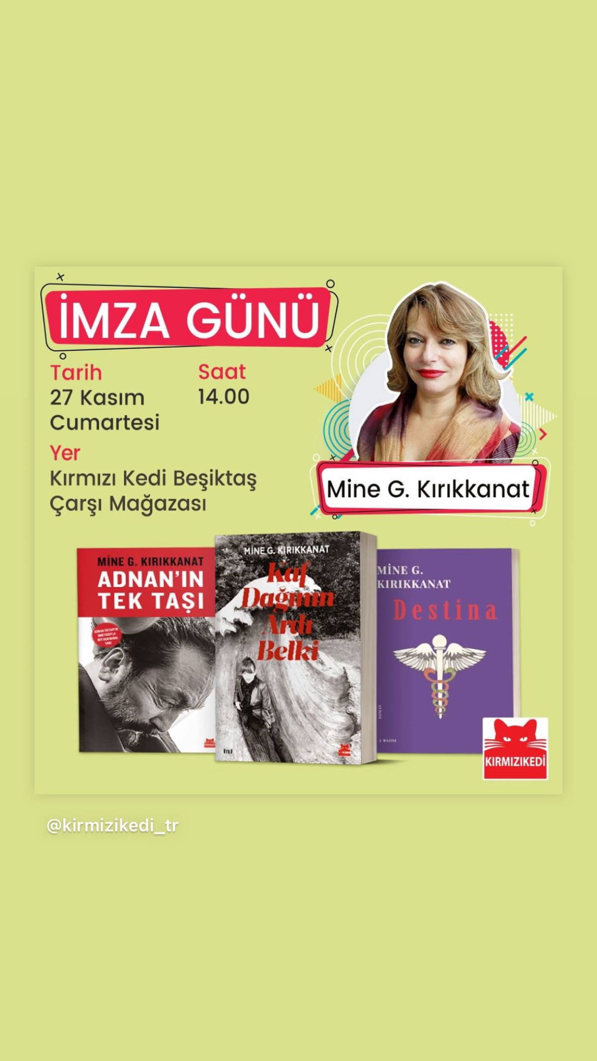 Gazetemiz yazarı Mine Kırıkkanat, yarın (27 Kasım Cumartesi) okuyucularıyla buluşuyor.