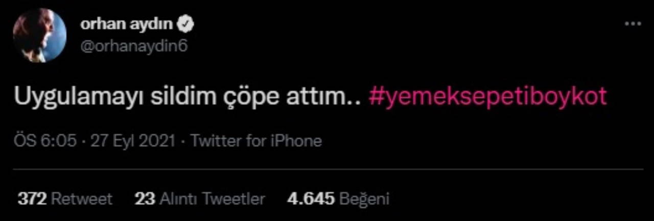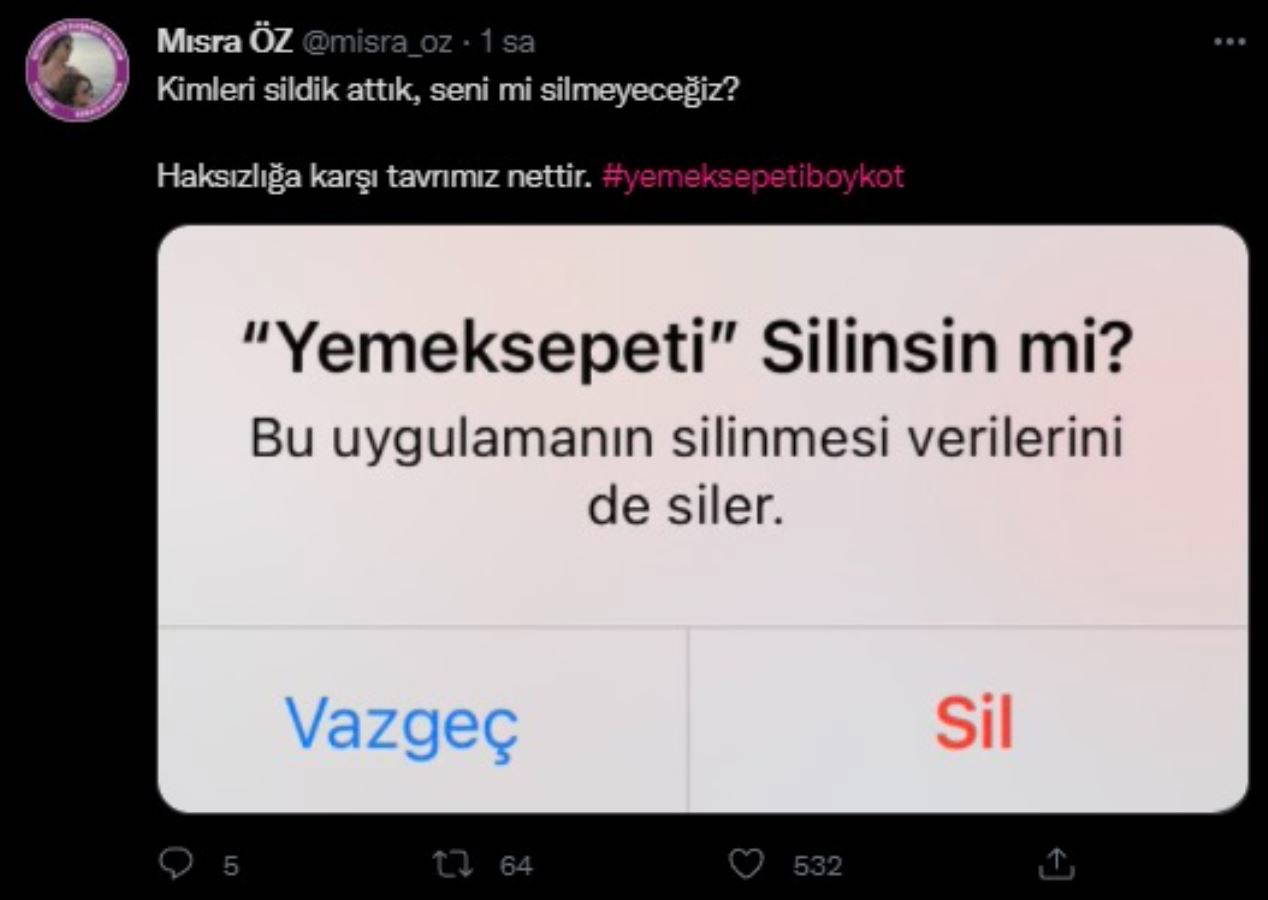 #YemeksepetiBoykot tagine gelen tepkilerden bazıları şu şekilde: