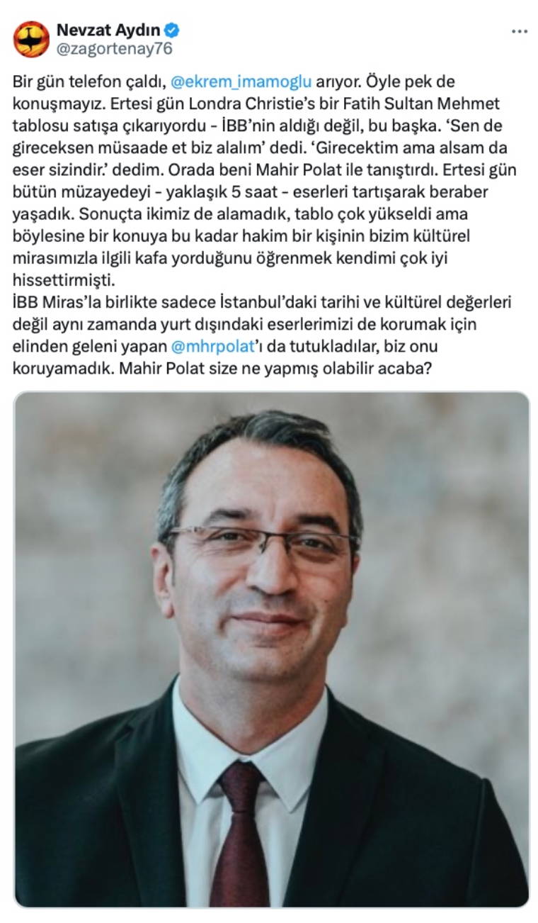 İBB Miras’la birlikte sadece İstanbul’daki tarihi ve kültürel değerleri değil aynı zamanda yurt dışındaki eserlerimizi de korumak için elinden geleni yapan Mahir Polat'ı da tutukladılar, biz onu koruyamadık. Mahir Polat size ne yapmış olabilir acaba?"