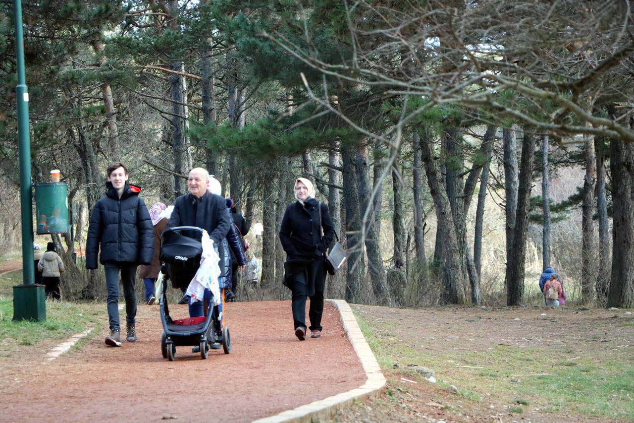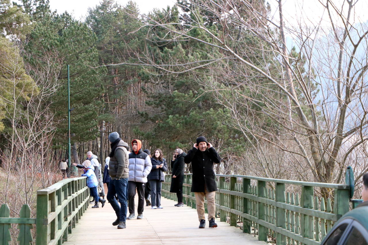 Yeni yılın ilk gününde hem otellerde konaklayanlar, hem de günübirlik tatilciler göl çevresinde yürüyüş yapıp eşsiz manzaranın tadını çıkardı.