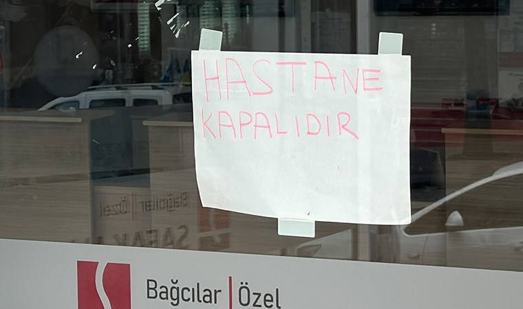 Bağcılar Özel Şafak Hastanesi'nin camında el yazısıyla "Hastane kapalıdır" şeklinde bilginin yer aldığı, hastanenin kapı girişinin ise iki dubayla bağlanıp kapatıldığı gözlendi.