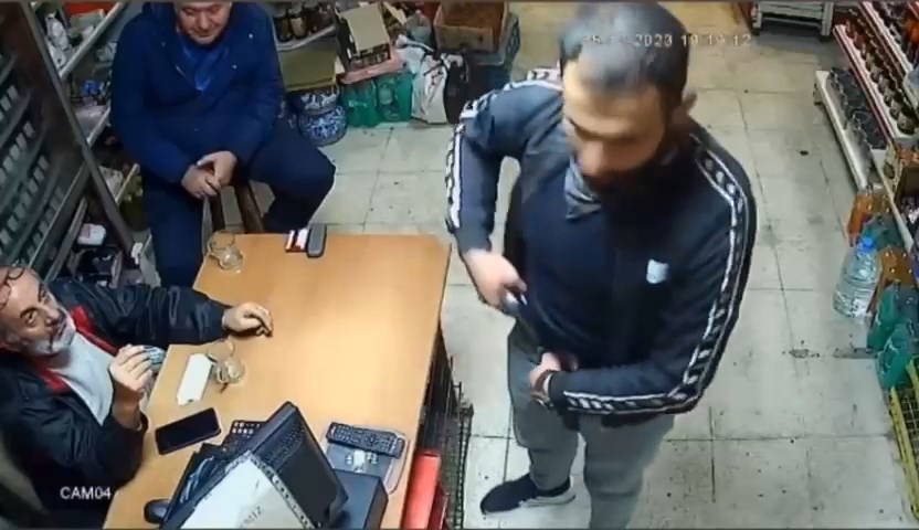İşyeri sahibiyle bir süre tartışan Kartal, ardından masadaki paketten 2 sigara alıp tekel bayisinden çıktı.