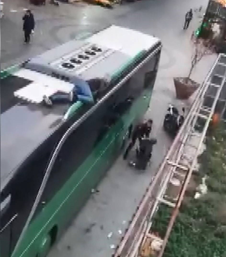 Talimhane Topçu Caddesi’nde, sabah saat 08.15 sıralarında çevredeki bir otelde kalanlar, uluslararası sefer düzenleyen otobüsün üstünde saklanan 2 kişiyi fark edince oteldeki görevlilere bildirdi.