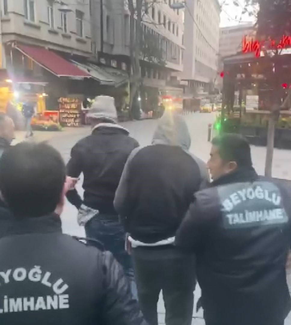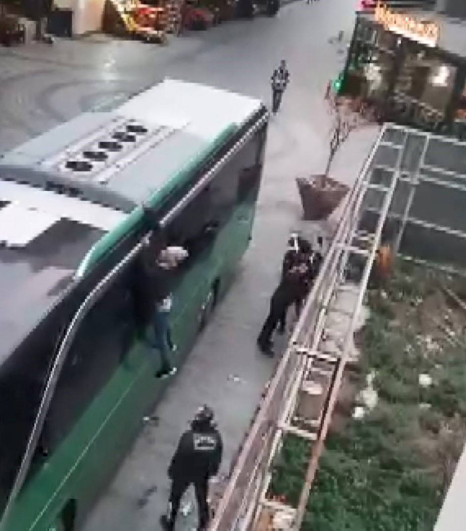 Görüntülerde, otobüsün üstünde saklanan 2 kişiyi, otel müşterileri fark ederek tepki gösteriyor. Olay yerine gelen güvenlik ekiplerini gören 2 kişi, kaçmaya çalışırken yakalanıyor. Daha sonra 2 kişi güvenlik görevlilerince polis ekiplerine teslim ediliyor.