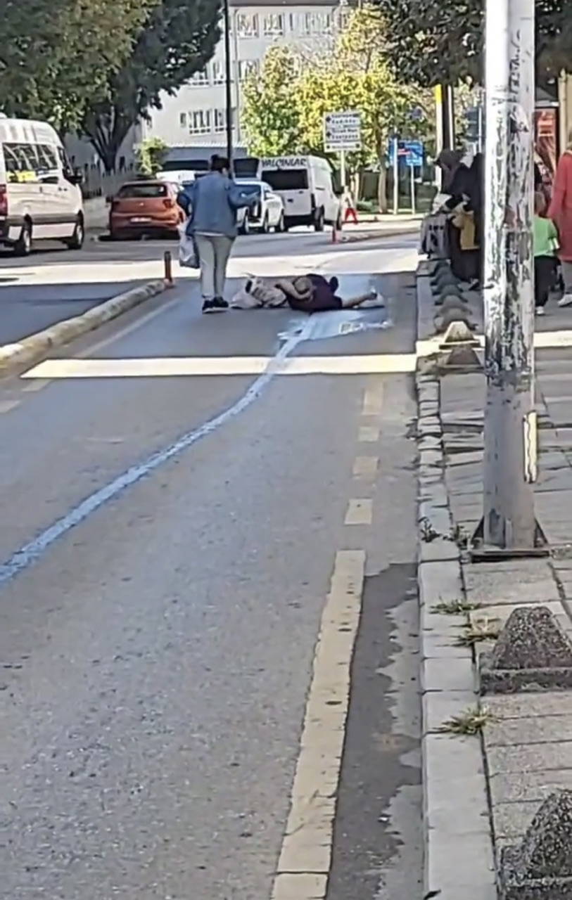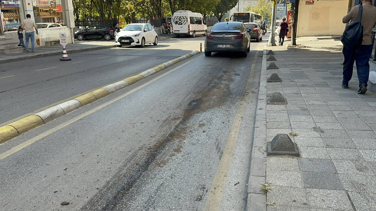 Bektaş'ın görüntü aldığı sırada caddeden karşıya geçmeye çalışan bir kadın, yağ birikintisine bastığı anda yere düştü. Kafasını sert şekilde yola vuran kadın vatandaşlar tarafından taksi ile hastaneye götürüldü.