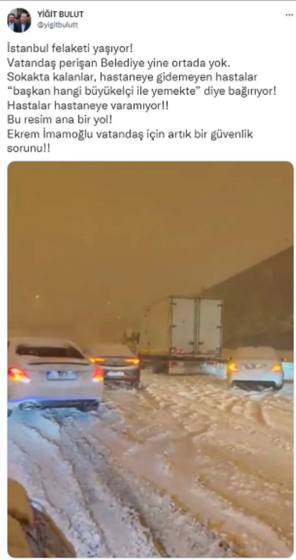 Aynı hataya Cumhurbaşkanı Recep Tayyip Erdoğan'ın başdanışmanı Yiğit Bulut da düştü. Aynı bölgenin fotoğrafını paylaşan Bulut, "Vatandaş yine perişan belediye ortada yok. Ekrem İmamoğlu vatandaş için bir güvenlik sorunu" diye yazınca İBB Sözcüsü Murat Ongun'dan cevap gecikmedi.