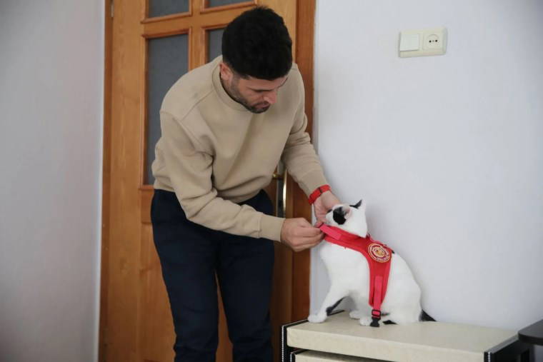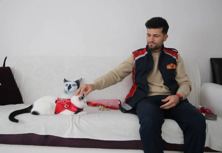 Çakas, "Depremin üzerinden bir yıl geçti. Kedimin şu anda gayet mutlu olduğunu görüyorum. Evde olunca oyunlar oynuyoruz. Bazı hareketler komutlar öğretiyorum. Yatarken, dinlerken yanımda hiç ayrılmıyor. İşe gidince de kapıdan, pencereden yolumu gözlüyor. Kedime itfaiyenin yeleğini giydirdim. Artık o da bizim arama kurtarma ekibinin bir parçası oldu" ifadelerini kullandı.