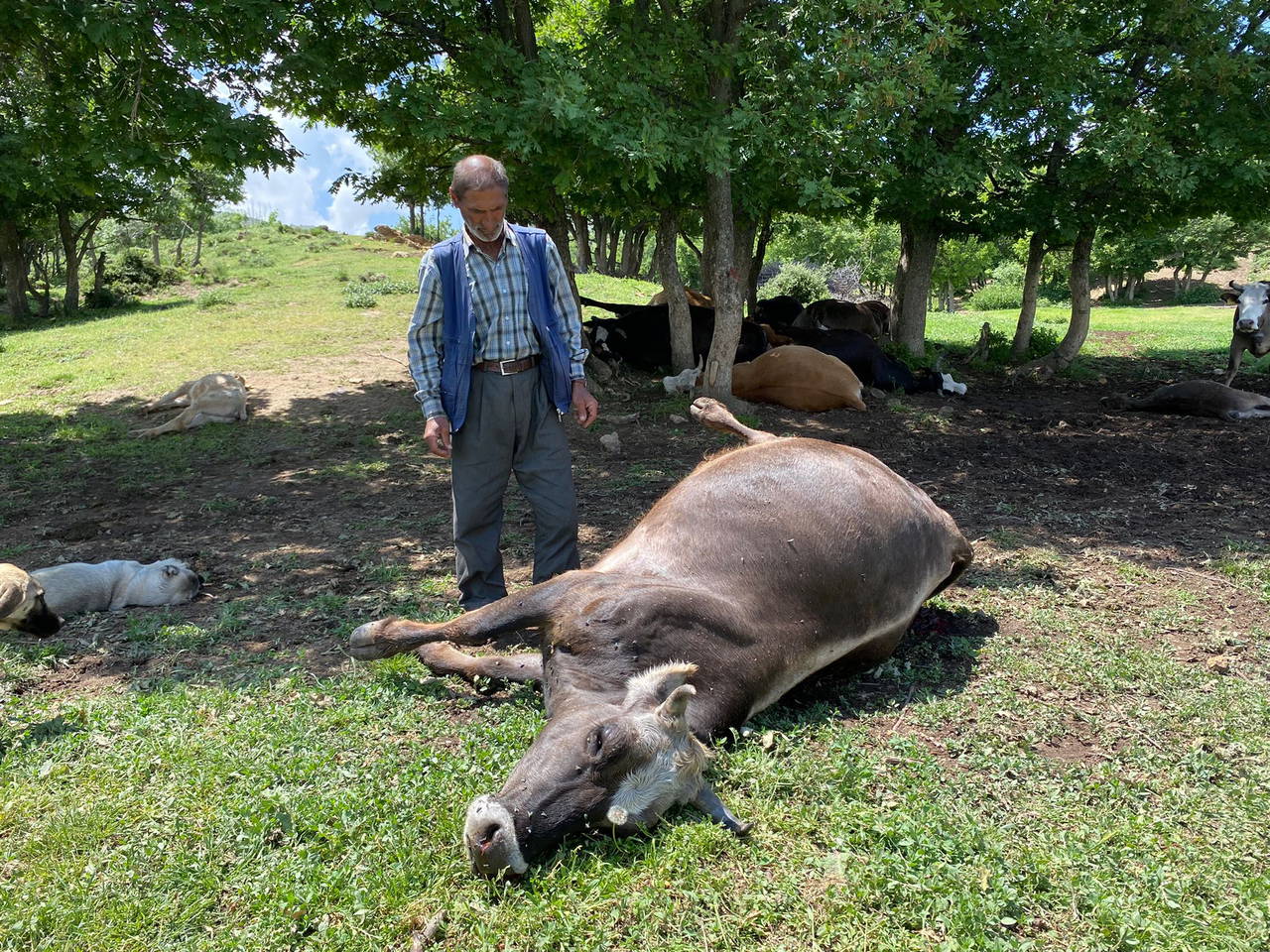Eber köyünde yaşayan besici Rahim Turunç, tek geçim kaynağının hayvancılık olduğunu ifade ederek, "Eber köyü Taşağıl Yaylası'nda hayvan otlatırken bir anda sağanak başladı. Şiddetli yağış sonucu hayvanlarım ağaçların altına girdiklerinde yıldırım isabet etti. 16 hayvanım öldü" dedi.