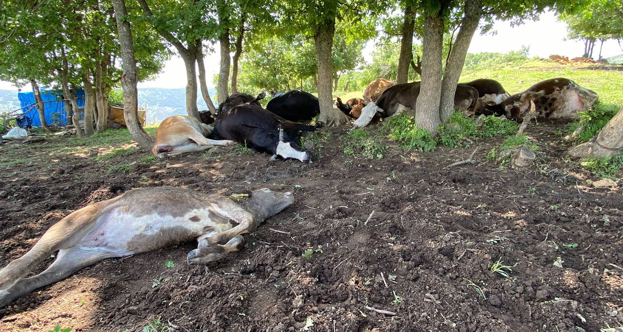 Yağmur dindikten sonra almaya gittiği hayvanlarının hareketsiz yattığını gören Rahim Turunç, durumu jandarma ile İlçe Tarım ve Orman Müdürlüğü'ne bildirdi. Olay yerine gelen ekipler, alanda inceleme yaptı.
