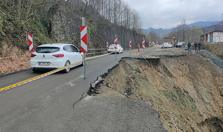 Trabzon'un Of ile Hayrat ilçelerini birbirine bağlayan karayolunda dün gece heyelan meydana geldi. Heyelan sonucu meydana gelen çökme sonrası karayolu ulaşıma kapanırken, sabah saatlerinde yapılan çalışma ile yol tek taraflı olarak trafiğe açıldı.