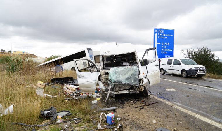 Edinilen bilgiye göre, İnebolu’dan İstanbul’a yolcu getiren Abdullah Haçat idaresindeki 34 BK 6764 plakalı yolcu otobüsü ile Emin Köseoğlu yönetimindeki 37 SA 378 plakalı temizlik ve gıda maddeleri bulunan minibüs, Seydiler’e geldikleri esnada tek şeritli yol olan Ağlı kavşağında çarpıştı.