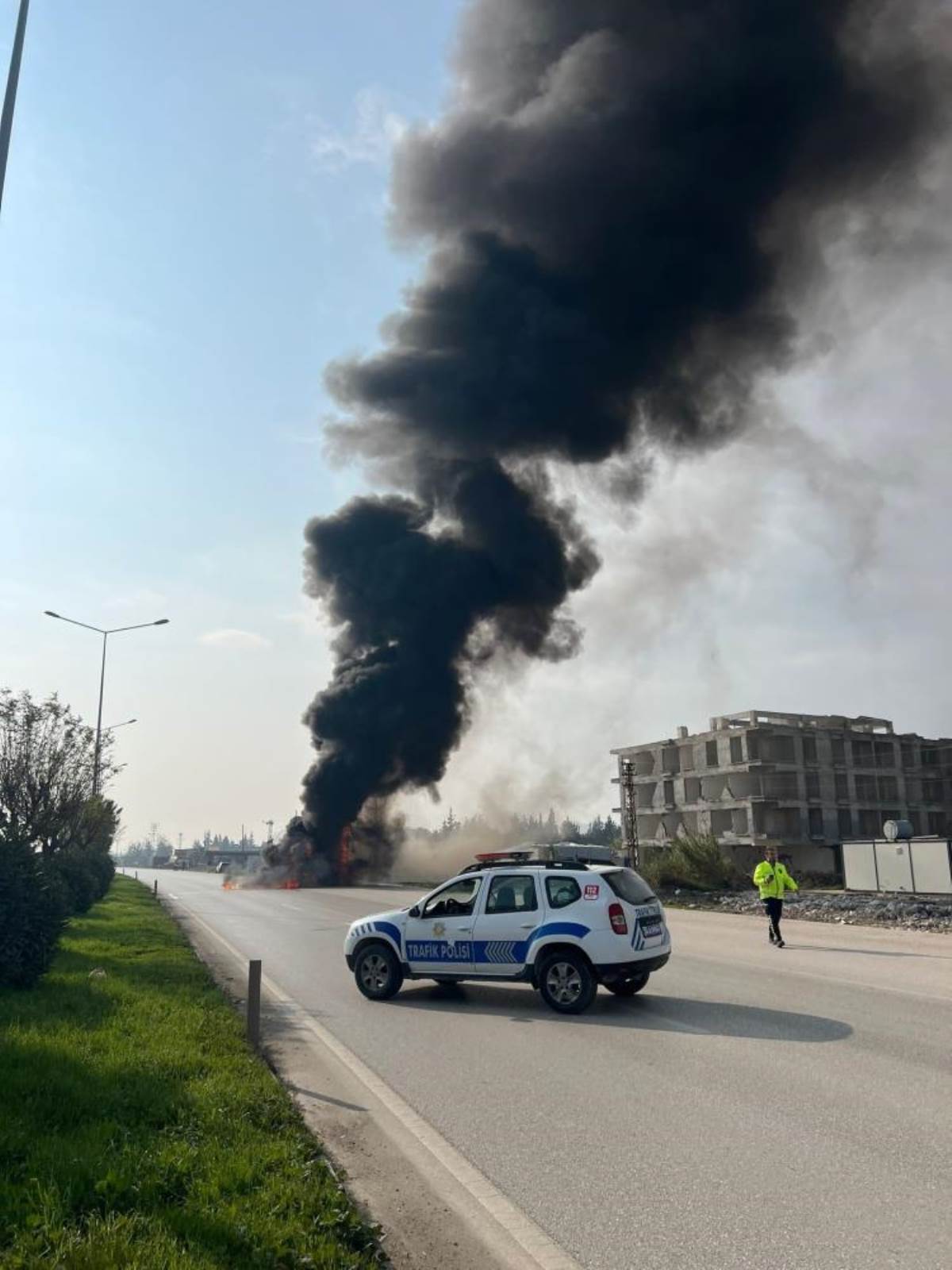 Antakya-İskenderun yolu Anayazı Mahallesi mevkisinde seyir halindeki Metro Turizm'e ait yolcu otobüsü alev alev yanmaya başladı.