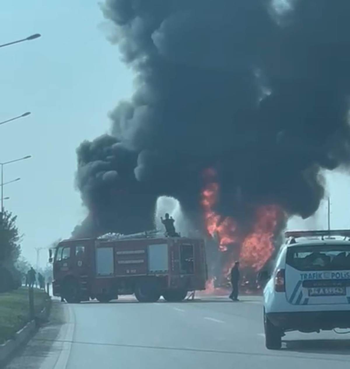 İtfaiyenin müdahalesiyle söndürülen yangın nedeniyle otobüste hasar meydana geldi.