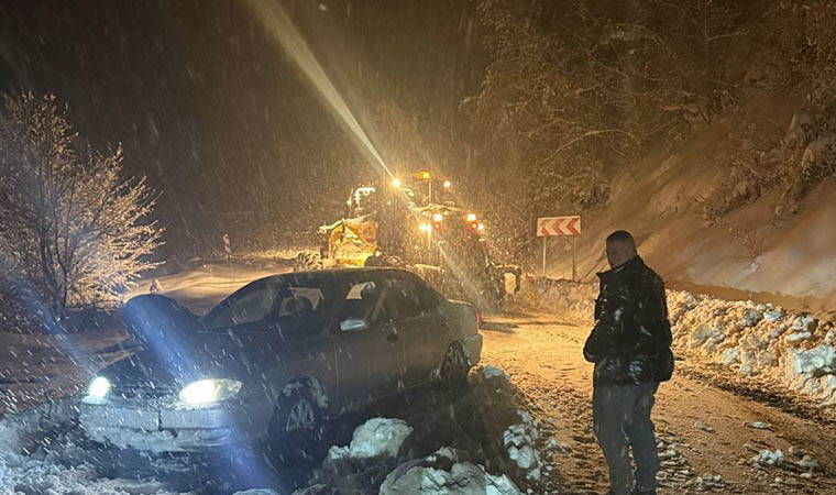 Yolda mahsur kalan 25 araç, ekiplerin çalışmasıyla kurtarıldı.