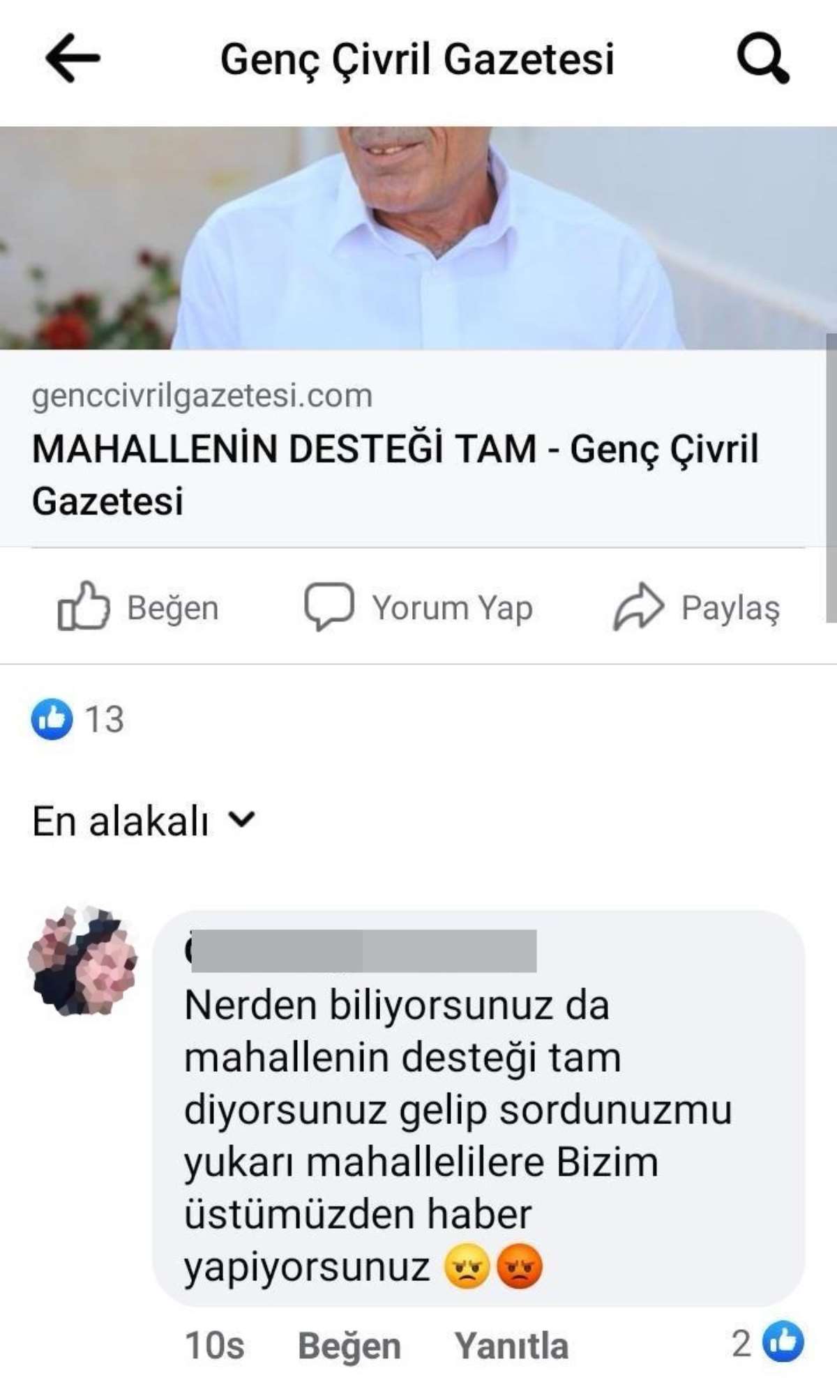 Paylaşıma yapılan yorumlardan birisi ise Özlem G. isimli bir vatandaştan geldi. Yaptığı paylaşımın altına “Nereden biliyorsunuz da mahallenin desteği tam diyorsunuz. Gelip sordunuz mu Yukarı Mahallelilere? Bizim üstümüzden haber yapıyorsunuz” şeklindeki yoruma kızan Fethan T., iddiaya göre, yorumu görünce sinirlenmesi ile Özlem G.’ye “Senin gibi mahallenin gülüne ihtiyacım yok. Kendini bilmez, hadsiz” diye mesaj gönderdi.
