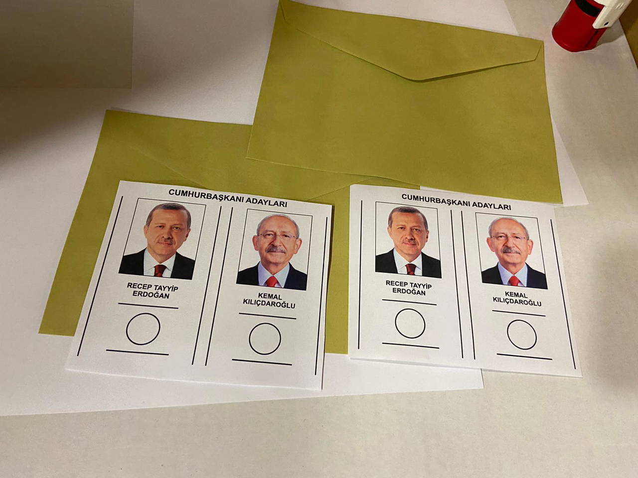 Cumhurbaşkanı adayları için hazırlanan oy pusulasında Cumhur İttifakı'nın adayı Recep Tayyip Erdoğan 1'inci sırada, Millet İttifakı'nın adayı Kemal Kılıçdaroğlu 2'inci sırada yer aldı.