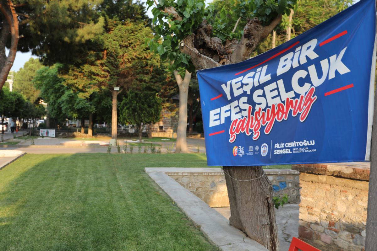Selçuk Belediyesi tarafından kentte yenilenen park hizmetinin tanıtımı için asılan “Yeşil Bir Efes Selçuk - Çalışıyoruz” yazılı pankartı, AKP’li Cumhurbaşkanı adayı Recep Tayip Erdoğan'ın temsilcisi tarafından ilçe seçim kuruluna yapılan müracaat esas alınarak, Selçuk İlçe Seçim Kurulu tarafından seçim dönemlerinde adaylar ve siyasi partiler için geçerli olan siyasi faaliyetleri düzenleyen yasa gerekçe gösterilerek yasaklandı.