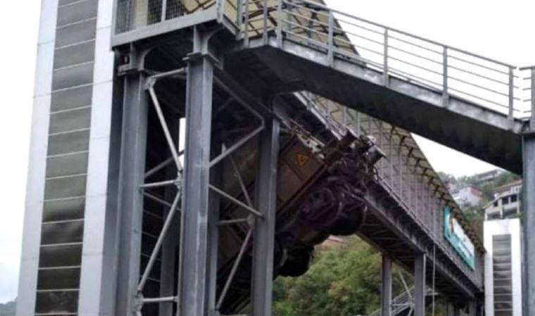 Zonguldak'ın Çatalağzı Beldesinde yük vagonu arkadan gelen bir vagonun çarpması sonucunda raydan çıkarak üst geçide çarptı.