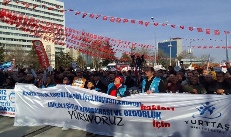 Başkent’te dün asgari ücretin kamuoyunun beklentisinin altında açıklanmasının ardından 69 demokratik kitle örgütü, meslek odası, sendika, konfederasyon ve derneğin organizasyonuyla Tandoğan Meydanı’nda Yurttaş Birlikteliği mitingi yapıldı. CHP Genel Başkanı Özgür Özel’in çağrısıyla tüm parti örgütü ve yöneticilerinin de katıldığı mitinge, “Bu asgari ücret zammıyla yeni yılda geçinemeyiz” diyen ve Türkiye’nin dört bir yanında yaşayan çok sayıda yurttaş geldi.