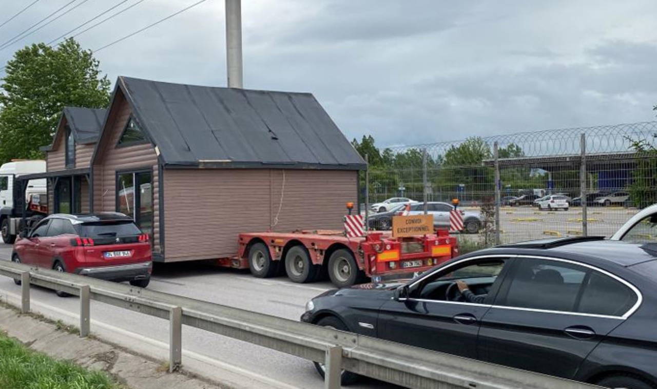 Kocaeli trafiği bugün alışık olmadığı manzarayla karşılaştı. İstanbul Tarabya’ya teslim edilmek üzere yola çıkan prefabrik ev yüklü tır, bazı noktalarda zorluk yaşadı.