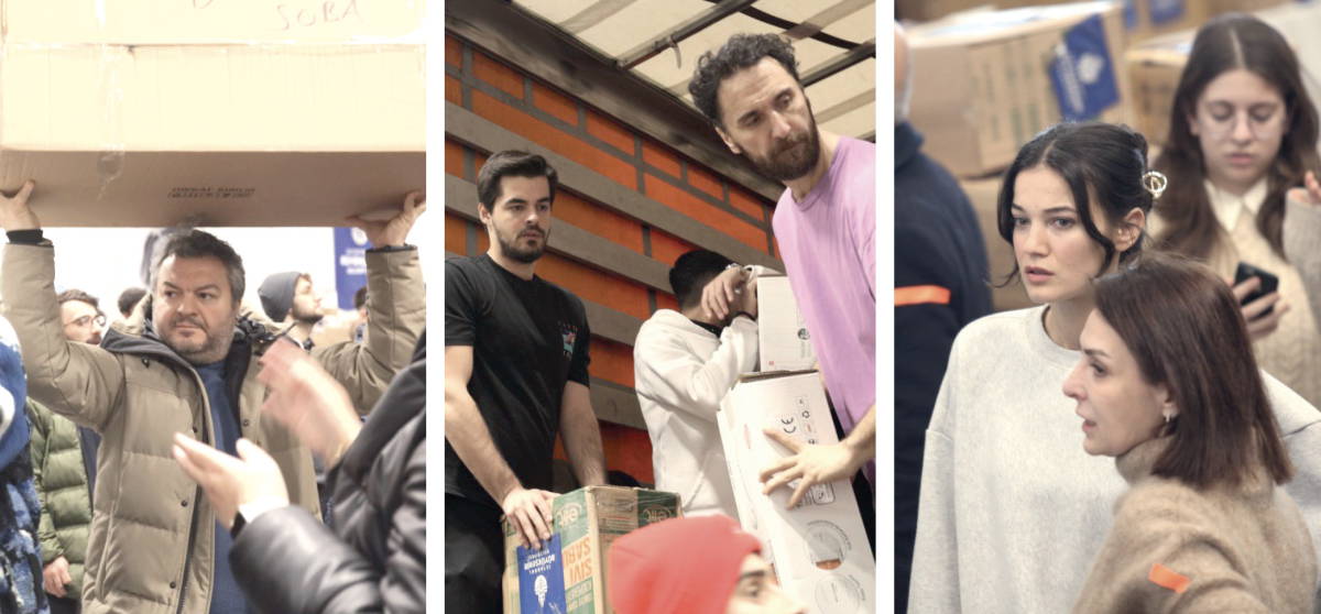 Burcu Biricik de Şişli’deki yardım çalışmalarında kolileme çalışmasına yardımcı oldu. Yosi Mizrahi Beşiktaş’taki Mustafa Kemal Kültür Merkezi’ndeki yardım organizasyonlarına katıldı. Erkan Kolçak Köstendil ile eşi Cansu Tosun da yardım çalışmalarına katılanlar arasındaydı. Demet Özdemir ile eşi Oğuzhan Koç, Mustafa Sandal, Murat Boz gibi isimler de İstinye’de yardım seferberliğine katıldı.