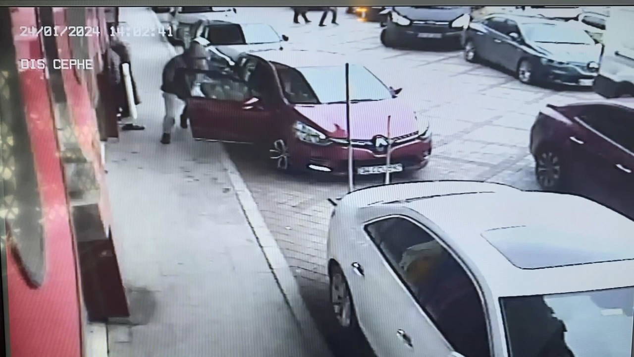 Tam bu sırada kendisini takip eden silahlı 2 kişi otomobil içerisinde bulunan para dolu poşetleri alıp kaçtı. Sokakta bulunan bir kişi durumu farkedip kaçan gaspçılara çelme takmaya çalıştı ancak başaralı olamadı.