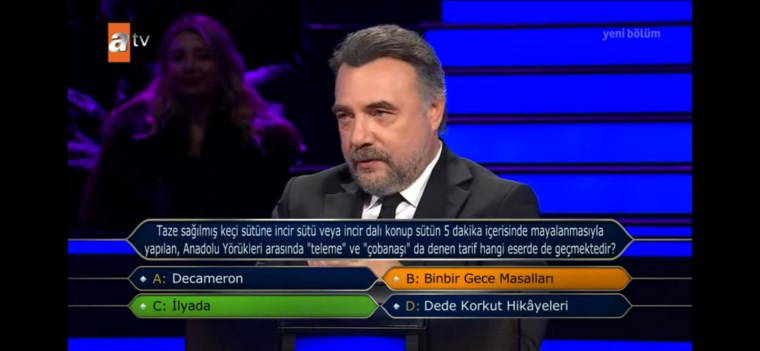 ATV'nin izleyiciyi ekrana kilitleyen popüler yarışma programı "Kim Milyoner Olmak İster", her hafta olduğu gibi bu hafta da heyecan dolu bir bölümle ekranlara geldi. Programın son bölümünde ünlü oyuncu Oktay Kaynarca'nın yarışmacıya yönelik sorduğu soru, izleyicilerin merak konusu oldu. İşte cevabı merak edilen o soru...