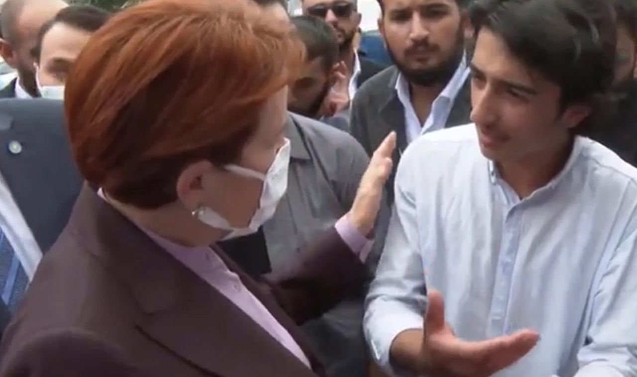 Akşener, gence, “Öyle şeyler söyledin ki benim yaşımdaki herkes utandı. Senin şu an başka yerlerdeki yaşıtların gibi ıslık çalarak geziyor olman lazımdı” sözleriyle karşılık verdi.