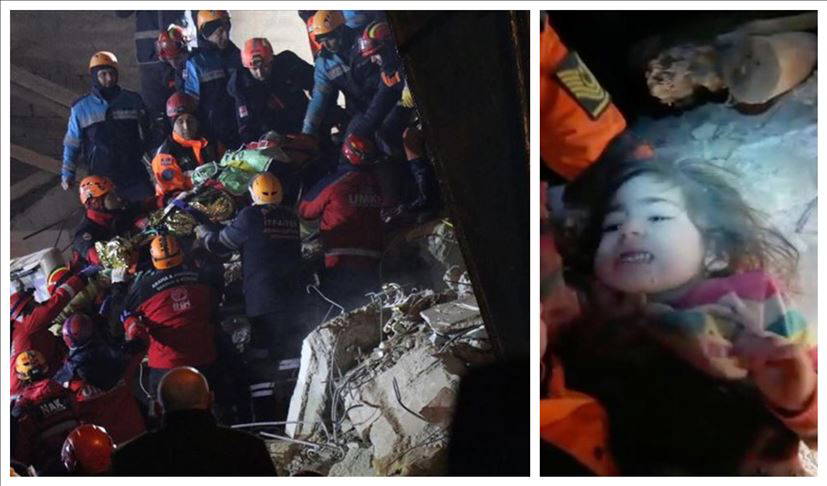Artçı sarsıntıların sürdüğü bölgede kadın ve çocuğunun zarar görmemesi için çalışmalarını titizlikle sürdüren ekipler, annenin 2,5 yaşındaki kızını enkazdan çıkararak kurtardı.