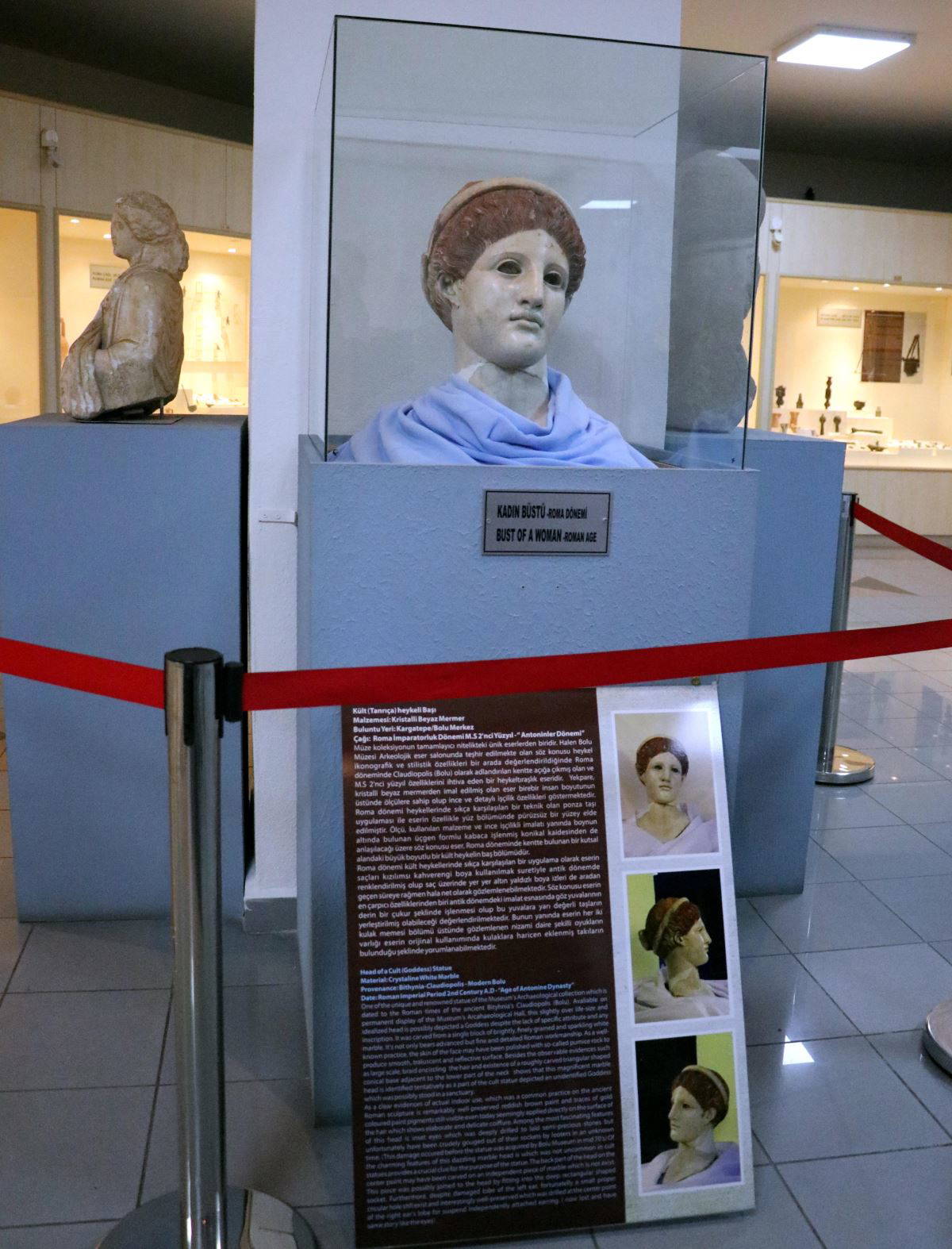 Heykel hakkında bilgiler veren Düzce Konuralp Antik Tiyatro Kazı Heyeti Ekip Üyesi Arkeolog Dr. Güzin Bilir, "Karşınızdaki ‘boyalı kadın başı’, vahşi doğanın, bereketin, avcılığın ve okçuluğun simgeleştirilmiş hali olan Artemis'tir. Bolu’nun doğal tabiat zenginliklerinin bir nevi kişileştirilmiş hali olan Artemis başı muhtemelen ada mermerinden veya Atina mermerinden yapılmış, oldukça üst düzey bir sanat eseridir. Kaliteliği, işçiliği ile dikkat çeken eser muhtemelen ithal olarak gelmiş, atölyesi ise güney İtalya bölgesi kökenli olabilir. Stilistik özelliklerine gelecek olursak eserin dikkat çekici noktası: yoğun boya izleri, özellikle saçlarında koyu kırmızı boyanın mevcut olmasıdır. Kızıl saç güzelliğin bir simgesi olarak görüldüğünden kadın saçları için kızıl boya tercih edilirdi" diye konuştu.