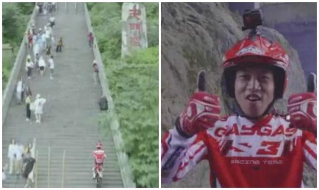 Yan Jie, ilk dik yamaçtan dikkatlice geçtikten sonra, hızlanmaya başladı. İkinci bölümü geçtikten sonra, merdivenler arasında en dik açı olan 41 derecelik eğime sahip ve 53 metre uzunluğundaki üçüncü yokuşa gelen ekstrem spor tutkunu motorcu merdivenlerdeki dik eğim ve hızın meydana getirdiği tehlike nedeniyle, normal şartlarda ayakta kullandığı motoru tırmanışın zorlu kısımlarında oturarak kullanmayı tercih etti.