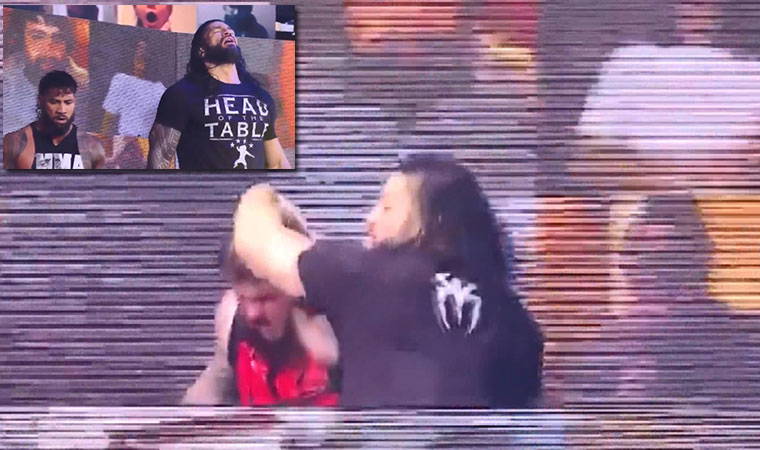 Roman Reigns lakaplı Amerikan profesyonel güreşçisi şampiyonluk konuşması sırasında rakibi Owens Fight adlı güreşçiyle tartışma yaşadı. Roman Reigns rakibini 5 metreden aşağıya fırlattı.