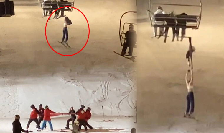 ABD'nin New York kentindeki bir kayak merkezinde telesiyejde arıza meydana geldi. Arıza nedeniyle mahsur kalanlar için seferberlik başlatıldı. Kurtarma çalışmaları sırasında ilginç bir olay yaşandı. Gerilen bir branda atlamaya çalışan kadın kayakçının ceketi telesiyejeye takıldı. Hareket etmekte zorlanan kadın kayakçıya mahsur kalan başka bir arkadaşından destek geldi. Daha sonra asılı kalan kadın kayakçı ceketini çıkararak, brandaya atladı. O anlar görgü tanığı Jacklyn Hoch isimli kişi tarafından kayda alındı. Asılı kalan kadının sağlık durumunun iyi olduğu öğrenildi.
